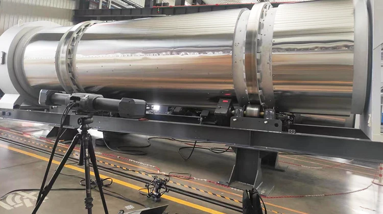 本案例工件主要測量兩端,無需掃描完整數據,但因工件較大且呈圓筒狀,因此除在兩端粘貼一圈定位標點外,僅在中間部位粘貼少量標記點進行過渡。