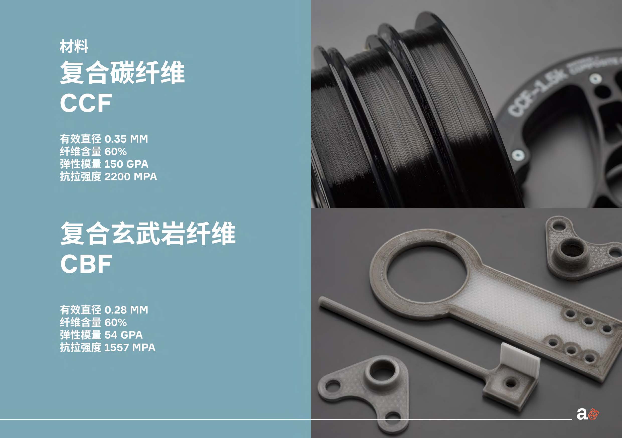 耗材: 復合材料連續碳纖維(CCF) 和 復合材 料玄武巖纖維 (CBF) 采用CCF 或 CBF打印的優勢: