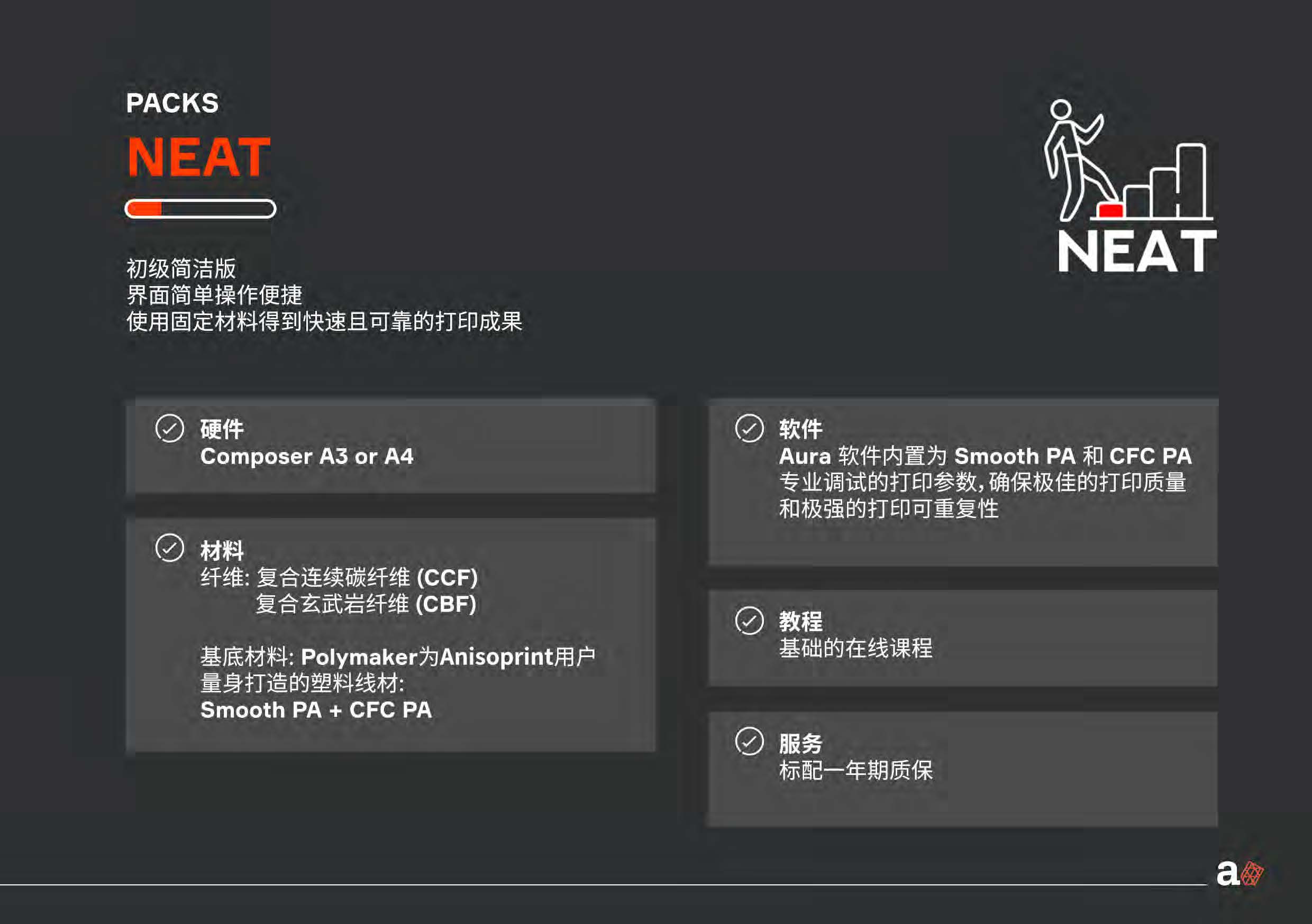 • 切片軟件:AnisoprintAura(支持FFF+CFC)、Cura、Slic3r(僅FFF),提供豐富的打印參數設置和優化。