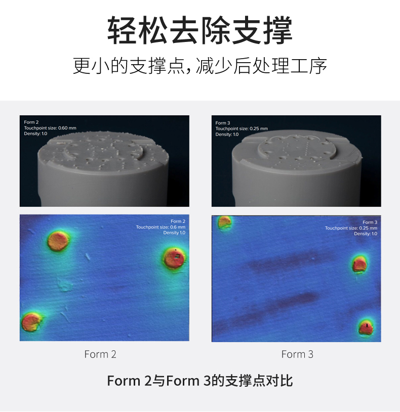 Form 3 將強(qiáng)大的立體光固化 (SLA) 技術(shù)搬到了桌面,僅需工業(yè)級(jí) 3D 打印機(jī)成本的一小部分,就可實(shí)現(xiàn)準(zhǔn)確的高精度打印。Form 3 由高精度光學(xué)引擎驅(qū)動(dòng),其創(chuàng)造的打印件細(xì)節(jié)精美,表面處理效果極佳,比其他塑料 3D 打印技術(shù)的打印件更為光滑和精細(xì)。節(jié)省用于后處理工序的時(shí)間和開支,增加用于創(chuàng)造的時(shí)間。